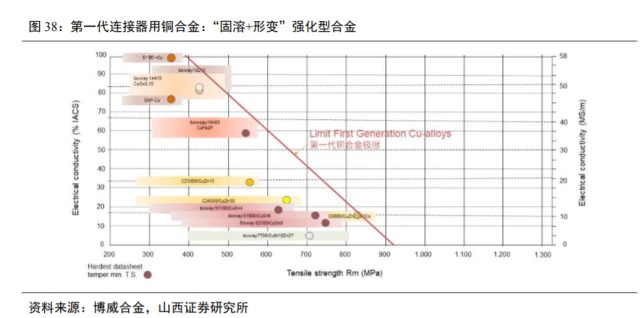 金品铜科、洛阳铜业、博威合金等企业在部分汽车连接器用铜合金方面取得成果。近年来我国金品铜科、洛阳铜业、博威合金等铜加工骨干企业为实现替代进口目标,瞄准航空、航天、通讯等高端应用领域紧缺的高强度、高电导、高精度的接触件铜材,开展铍铜、钛铜、镍硅铜、镍钴硅铜、铬锆铜、铁铜和碲铜等系列合金熔铸、轧制、热处理、精整等工艺攻关,取得了许多研发和产业化生产成果。目前部分铜合金带、丝材已能替代进口,镍钴硅铜、铬锆铜和碲铜等合金成功应用于新能源汽车连接器?/p> (本文仅供参考,不代表我们的任何投资建议。如需使用相关信息,请参阅报告原文。)